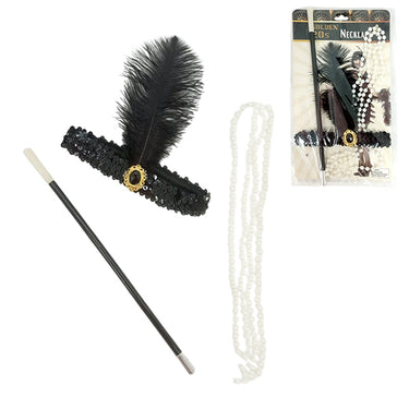 Set cintillo charleston. Contiene cintilllo, collar y pitillera.