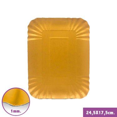 BANDEJA RECT. METALIZADA 600GR 24.5 x 17.5 DORADA (L)