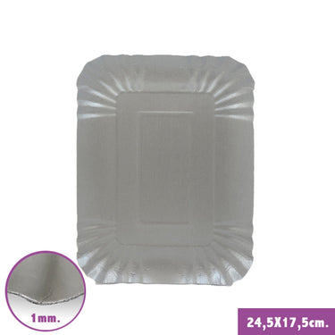 BANDEJA RECT. METALIZADA 600GR 24.5 x 17.5 PLATA (L)