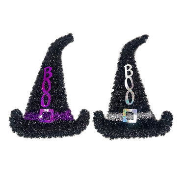 Decoracion Halloween sombrero. Contiene 1 unidad en colores surtidos y mide 40x30 cm aproximadamente.