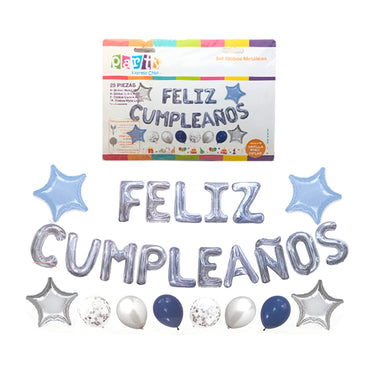 SET GLOBO MYLAR 25 PZAS. F.C. PLATA (L)