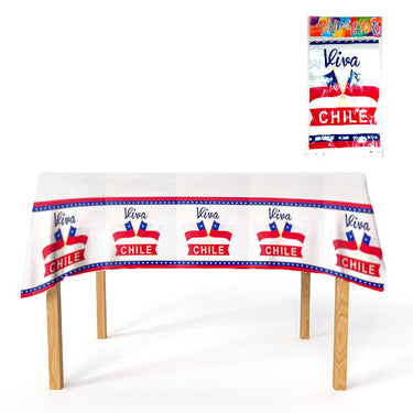Dale el toque final a tu mesa este 18 de septiembre con este mantel decorativo que luce el mensaje Viva Chile acompañado de banderas tricolor. Ideal para asados, fondas, celebraciones familiares o escolares, creando un ambiente festivo y lleno de orgullo patrio.