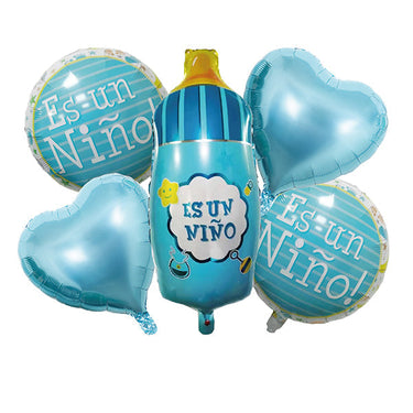 Home Comercio set metalicos/latex Globo Mylar Baby Shower Niño Biberon 5 Piezas