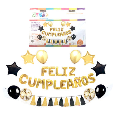- 1 set de globos foil "Feliz Cumpleaños" (15 piezas)