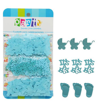 Este confeti de mesa incluye 3 figuras: ositos, "its a boy" y globos