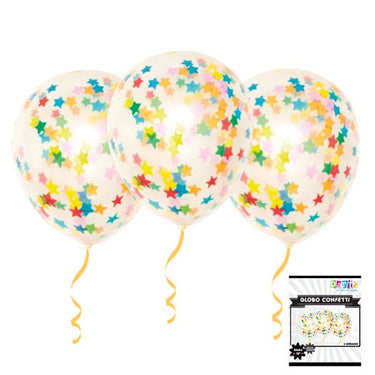 El pack incluye 6 globos con valvula que contienen confeti estrella