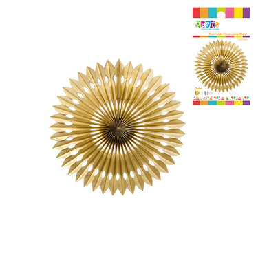 Escarapela abanico dorado. Mide 20 cm de di metro.
