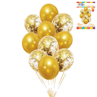 GLOBO LATEX CONFETI X 10 DORADO (L)