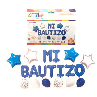 GLOBO MYLAR BAUTIZO CELESTE 19 PIEZAS