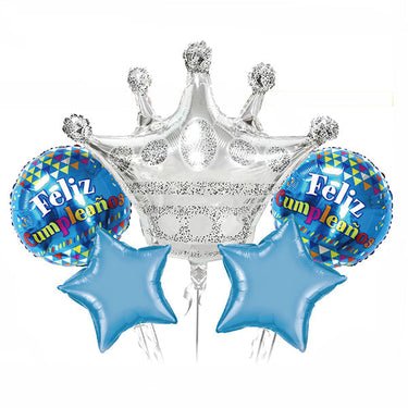 GLOBO MYLAR CORONA PLATEADO 5 PIEZAS