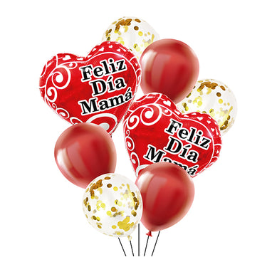 GLOBO LATEX/MYLAR 8 PZAS COR. FD MAMA ROJO (L)