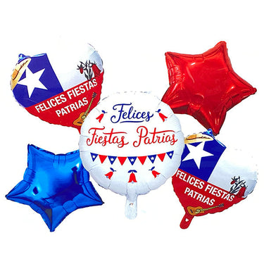 GLOBO METALICO 18" FELICES FIESTAS 5 PIEZAS