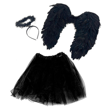 SET ALAS PLUMAS/TUTU/CINTILLO NEGRO ADULTO