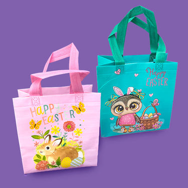 Con ilustraciones vibrantes de conejos y motivos primaverales, esta bolsa aporta un toque especial a la celebración de Pascua.